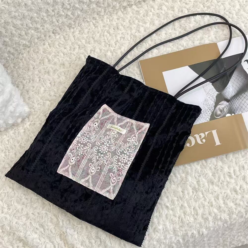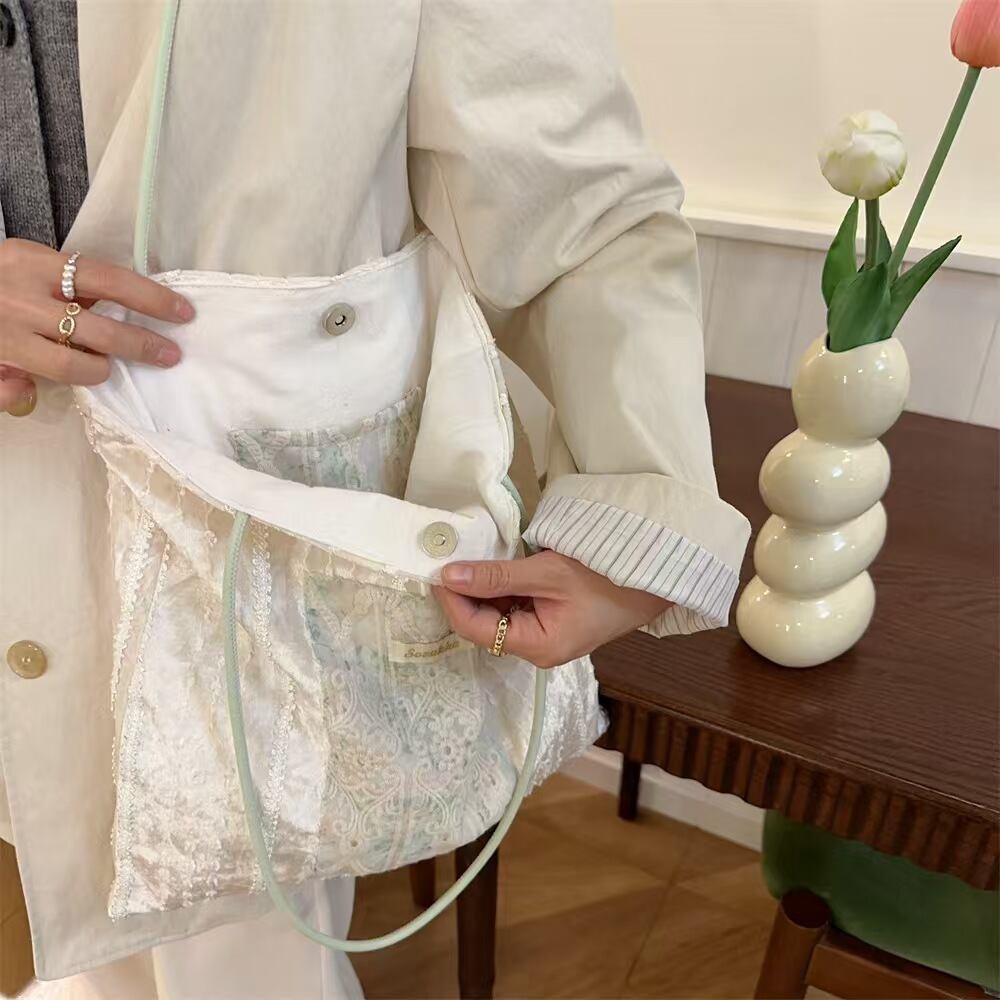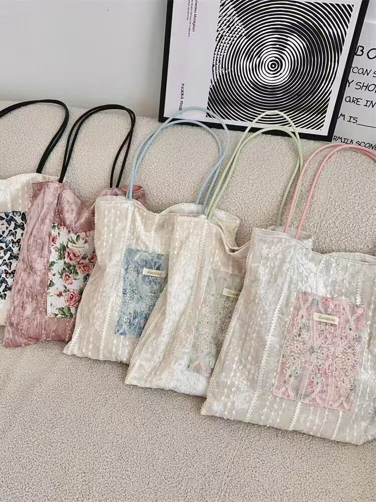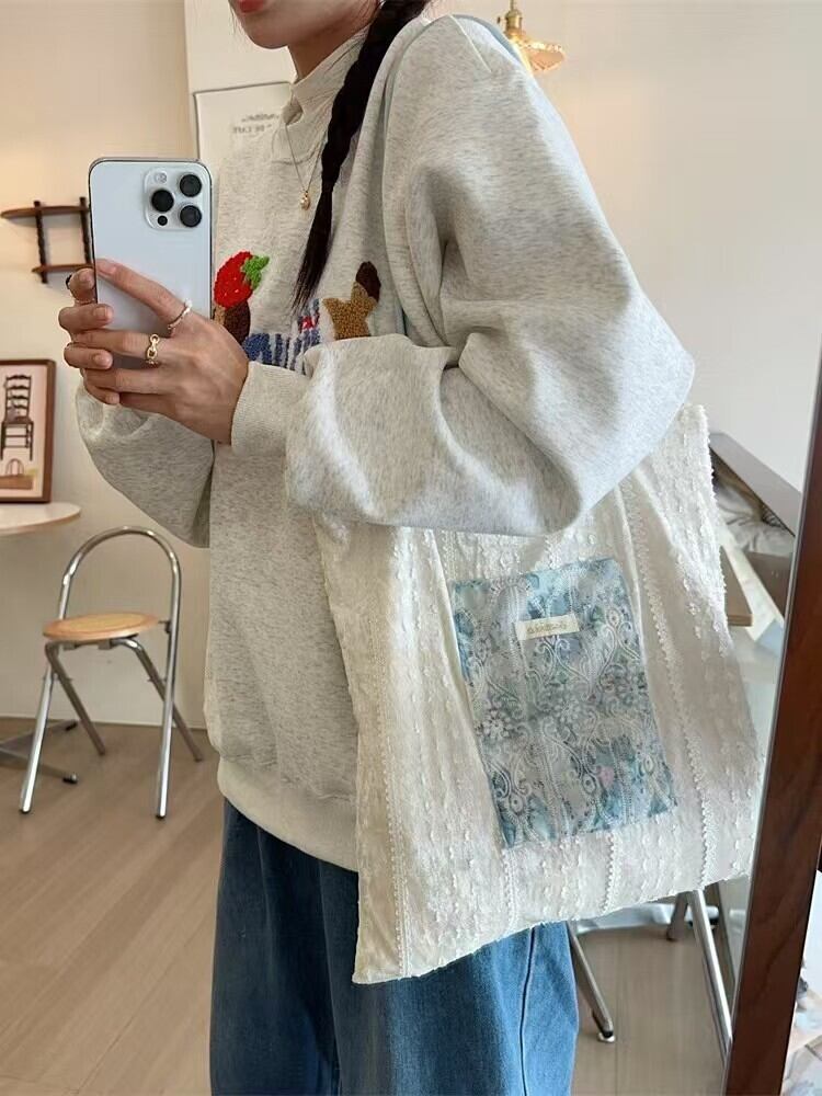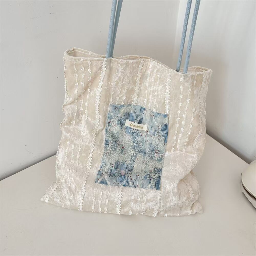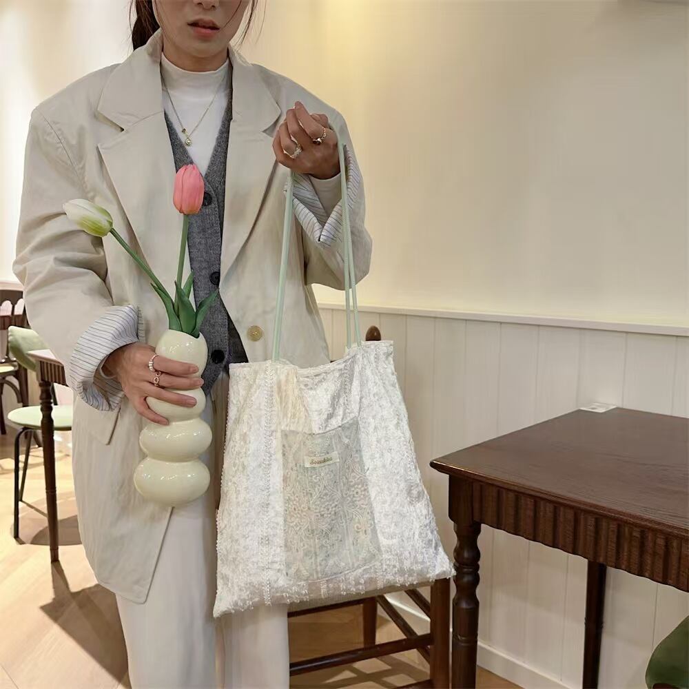 新作・レース付きパール風キャンバストートバッグ(大容量・通勤にも)