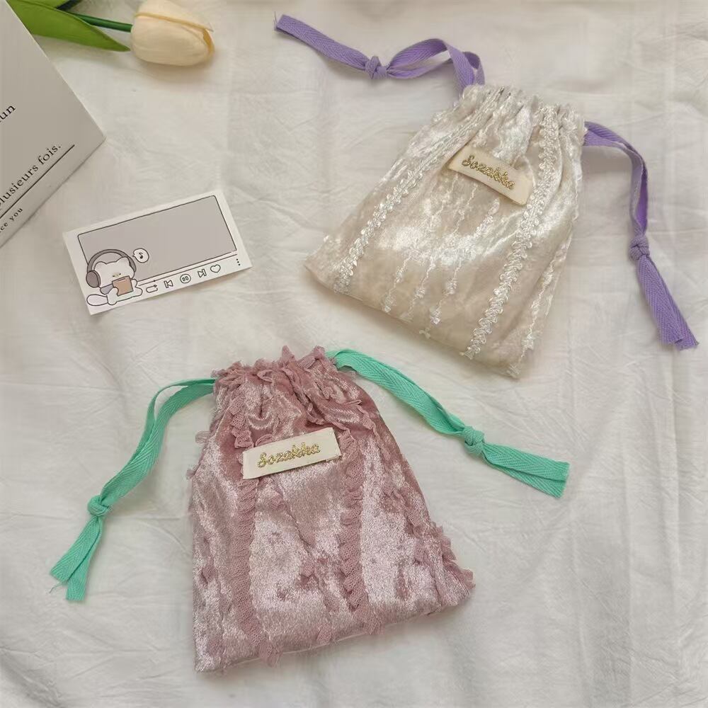 レースフリル付き 抽選式収納ポーチ(化粧ポーチ/小物入れ/コインケース)