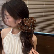 おしゃれなフレンチヴィンテージドット柄:エレガントなシフォン生地に施されたドット模様が、特別な気分を演出する髪飾りです。デイリーから特別なシーンまで多彩なスタイルにマッチします!