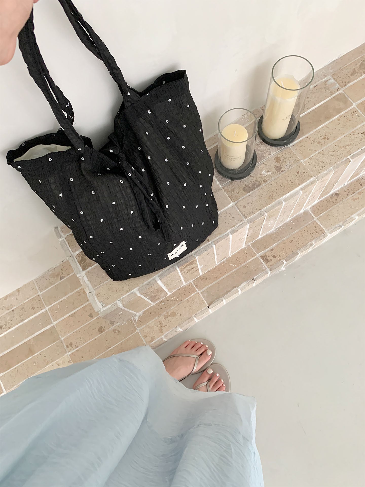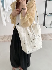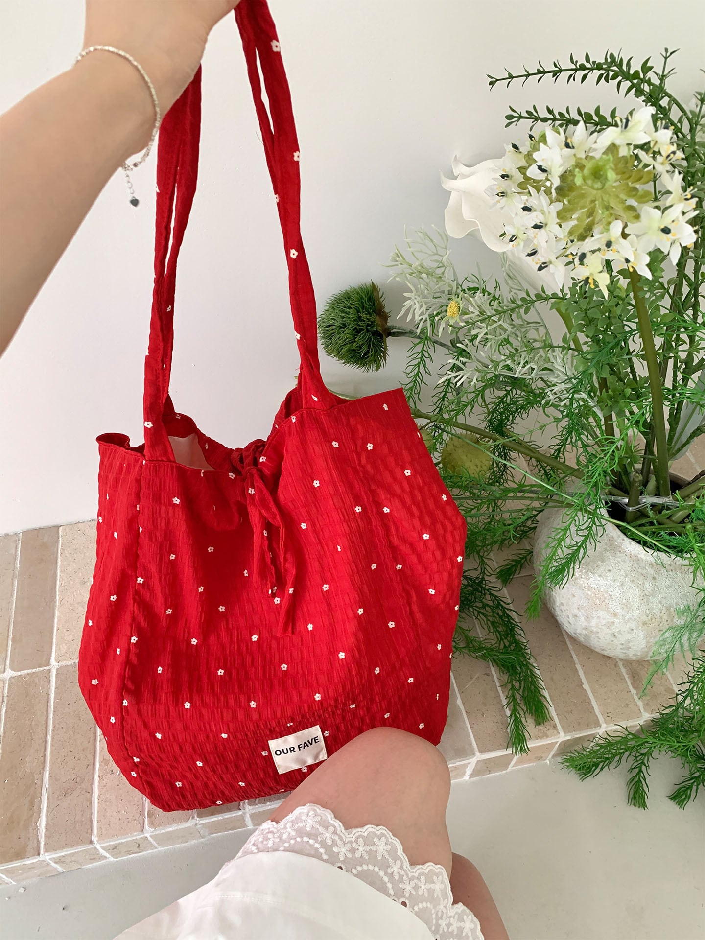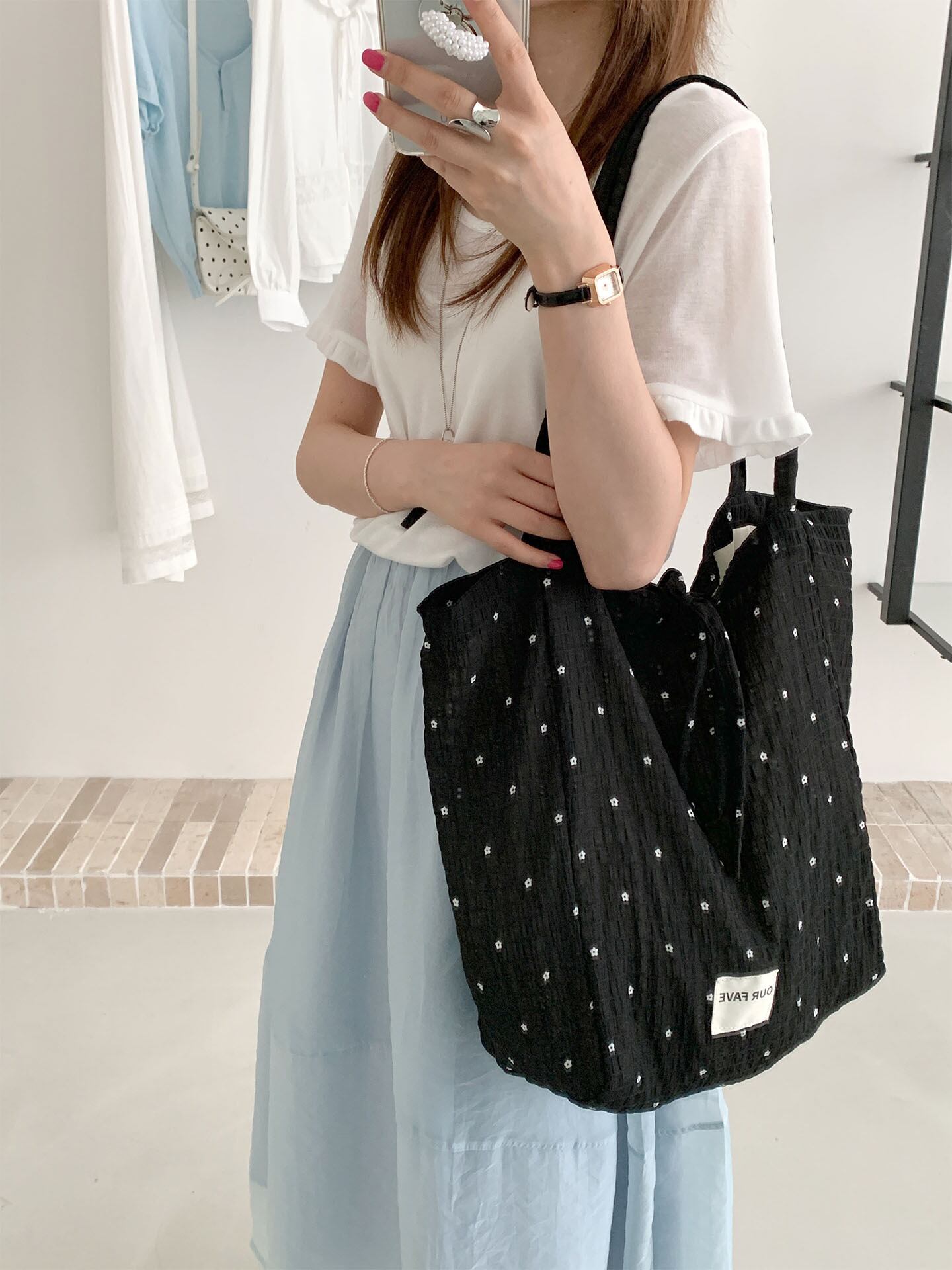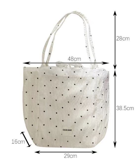 素材には耐久性のあるポリエステルを使用し、柔らかさと丈夫さを両立。シンプルでありながらトレンド感のある花柄は、どんなコーデにもぴったり。通勤やお出かけ、大学生活にも使える万能バッグです。