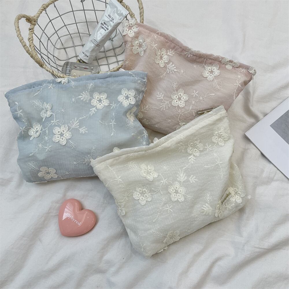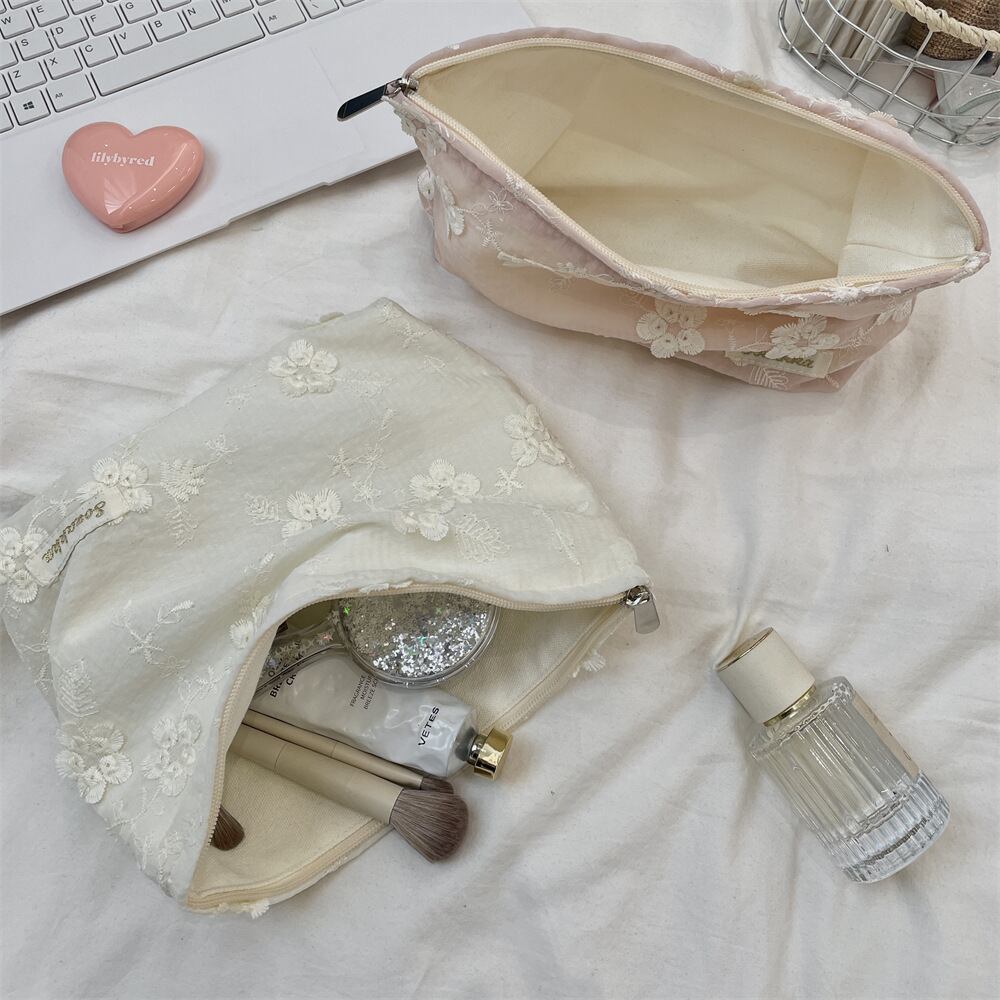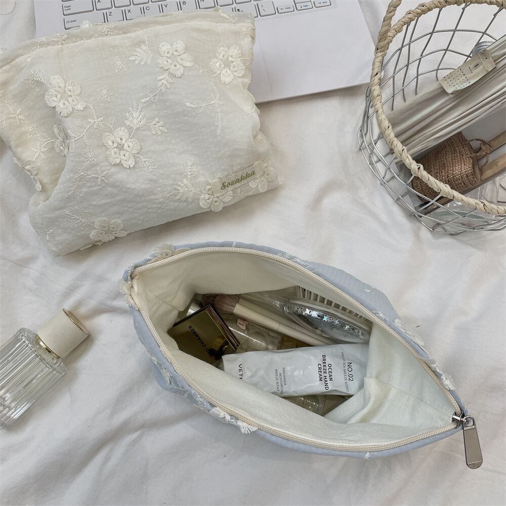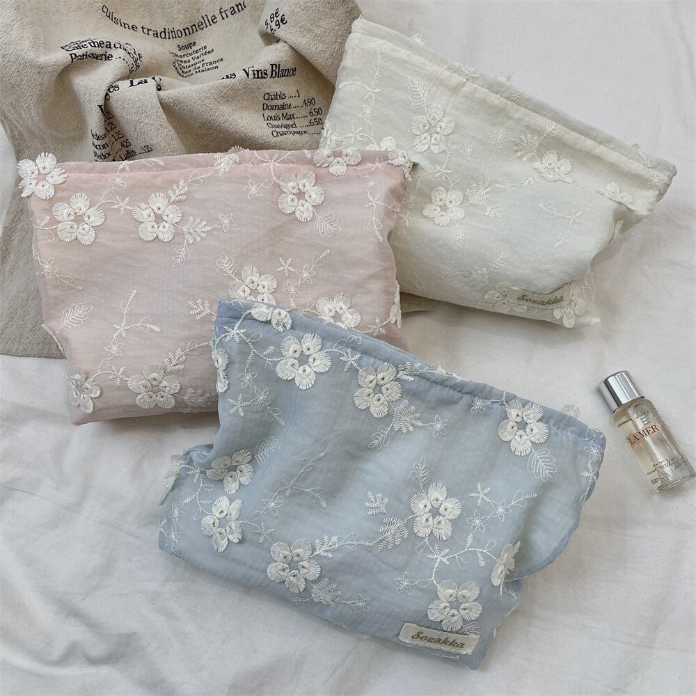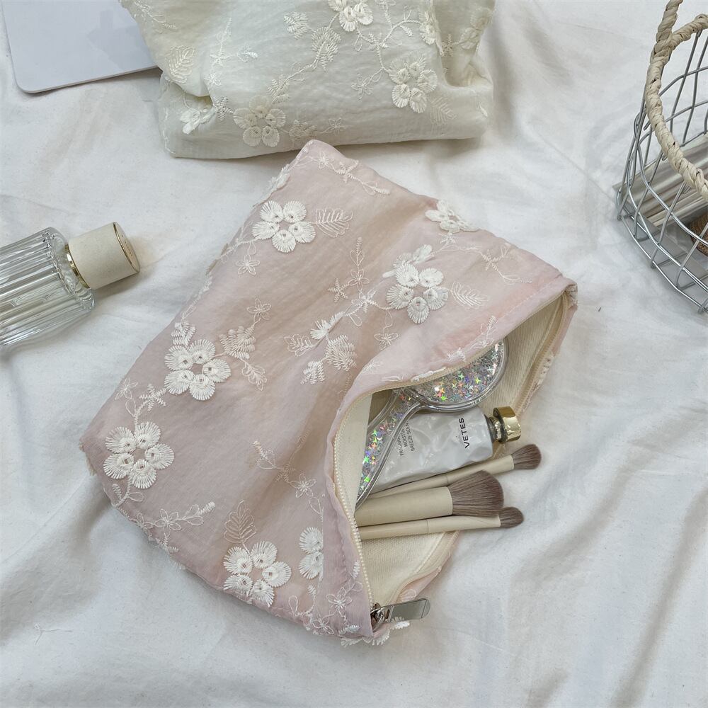 浮き彫り花柄メイク・スキンケア収納ポーチ(大容量)