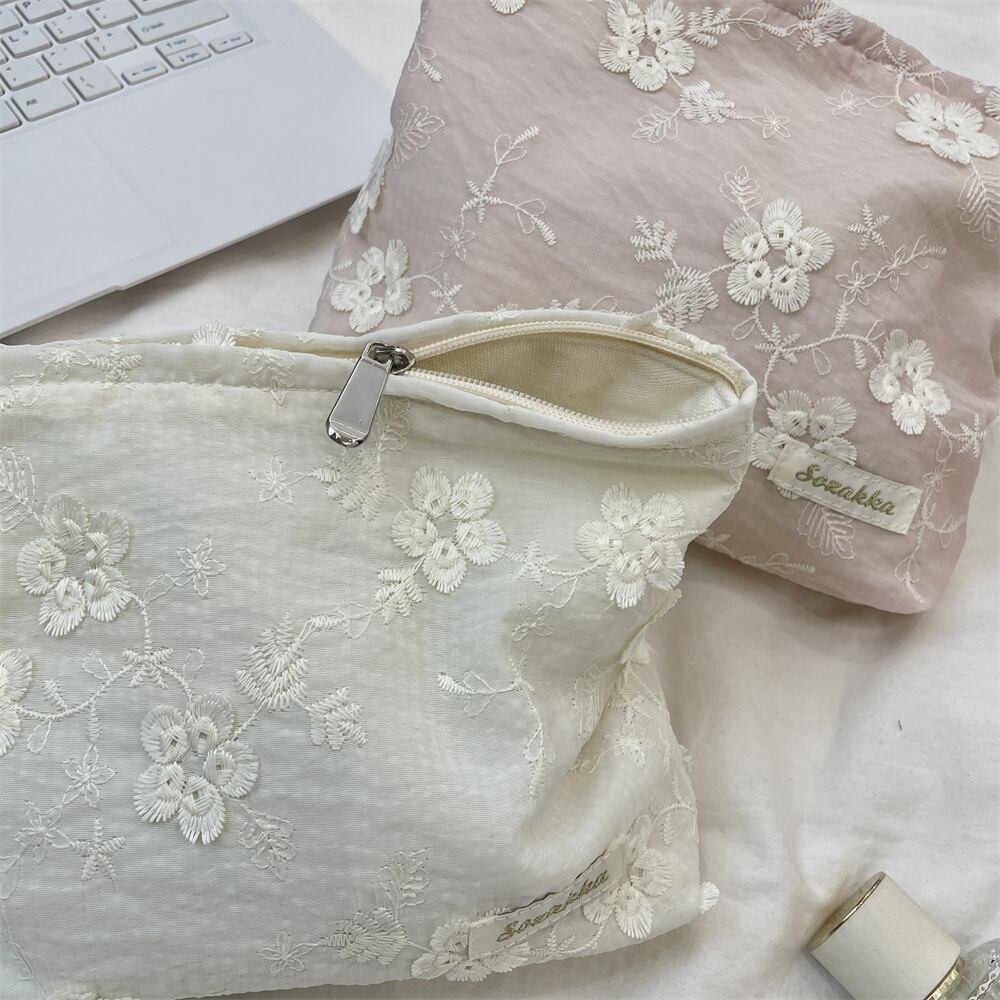 この浮き彫り小花デザインのメイクポーチは、シンプルながらも華やかな印象を与える美しいアイテム。外側の小花の浮き彫り模様が可愛さを引き立て、女性らしい華やかな雰囲気を演出します。