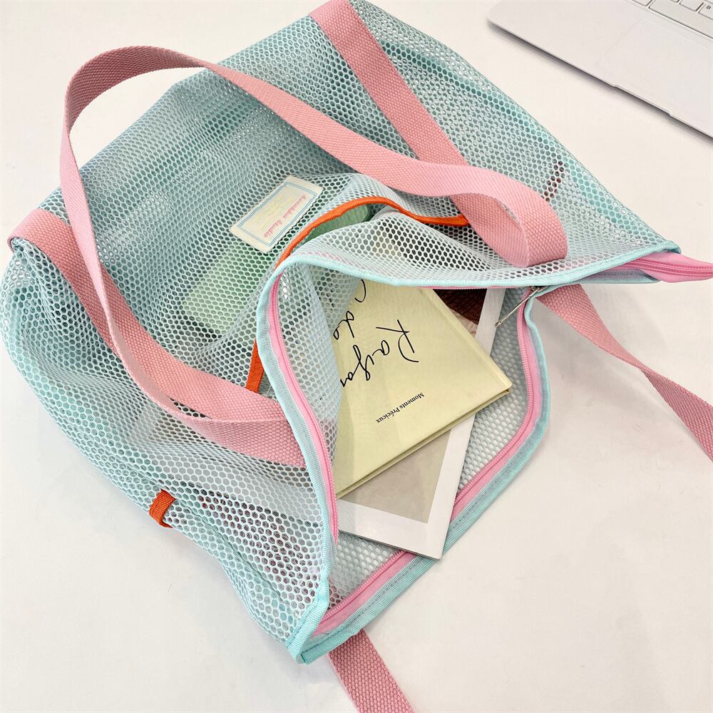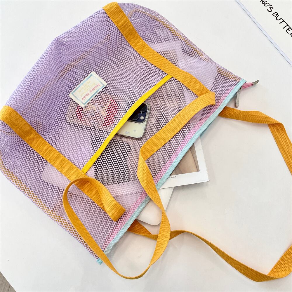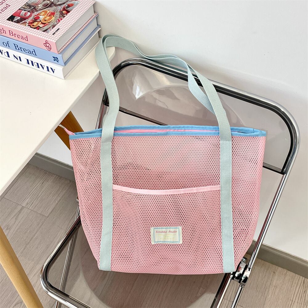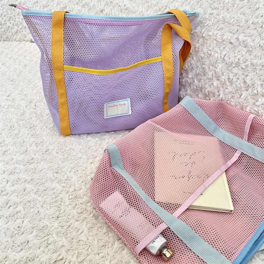 韓国インスタ風メッシュ穴あき収納バッグ・ショルダーバッグ・ビーチバッグ