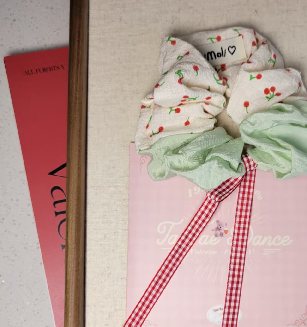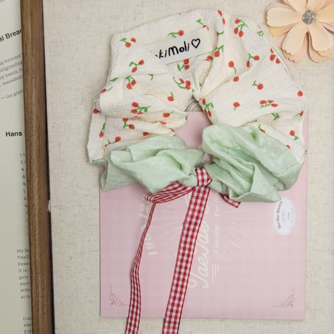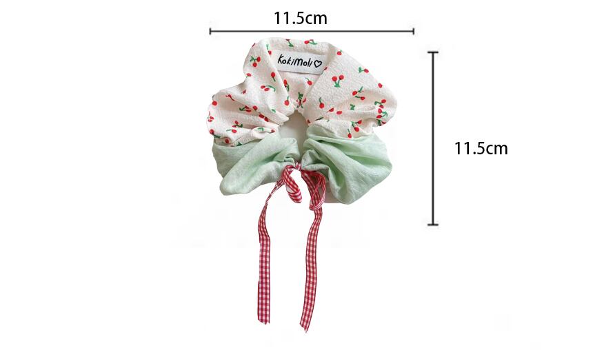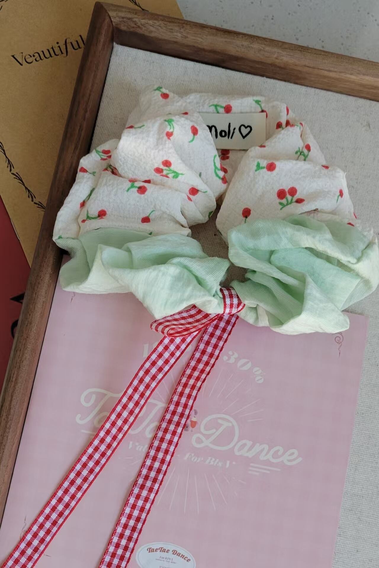 新作・韓国風かわいいチェリーリボンシュシュ 上品なお団子ヘアアクセサリー