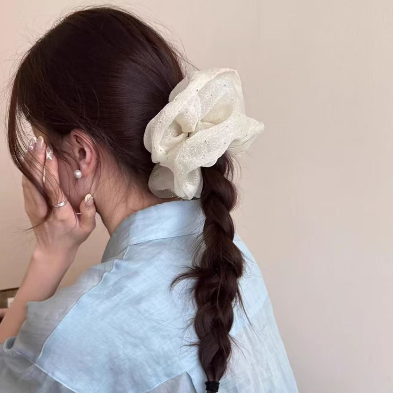 メッシュとスパンコールの絶妙なバランスが、あなたのヘアスタイルに洗練された華やかさをプラスします。
