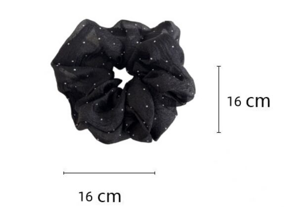 この新作のスパンコール付きメッシュシュシュは、光り輝くスパンコールがアクセントとなった魅力的なデザインのヘアアクセサリーです。
