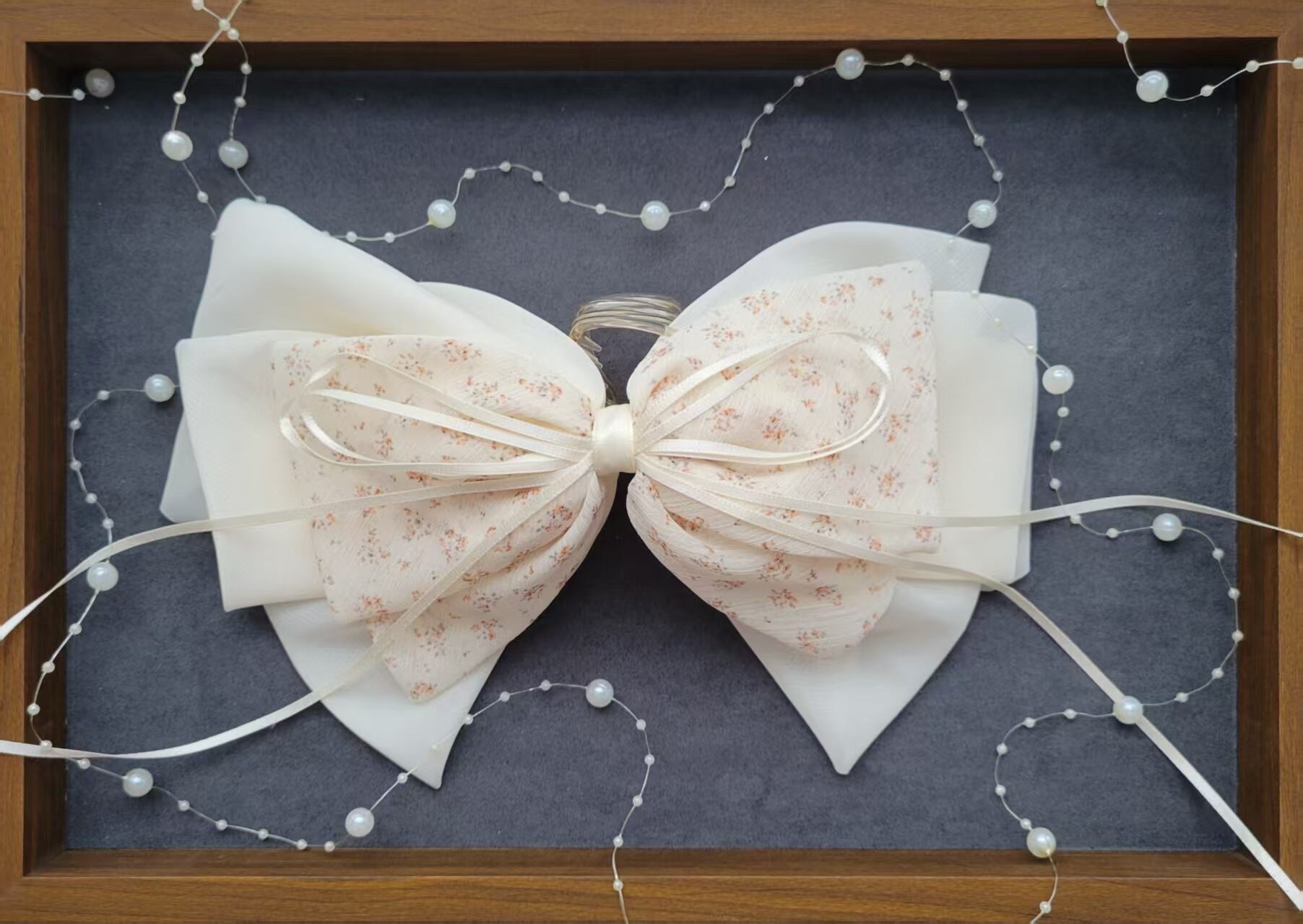 シルクピンクフラワーリボンバンスクリップは、やさしい雰囲気を演出する特別なヘアアクセサリーです。