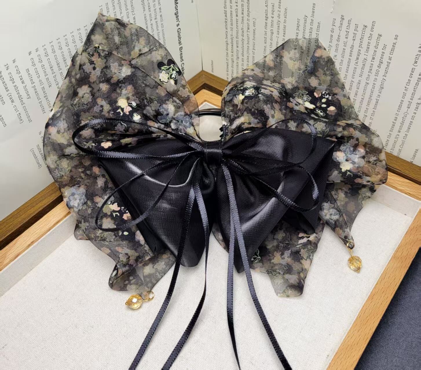 ハンドメイド 上品フラワーリボン&クリスタル付きバンスクリップは、華やかさと洗練さを兼ね備えた特別なヘアアクセサリーです。