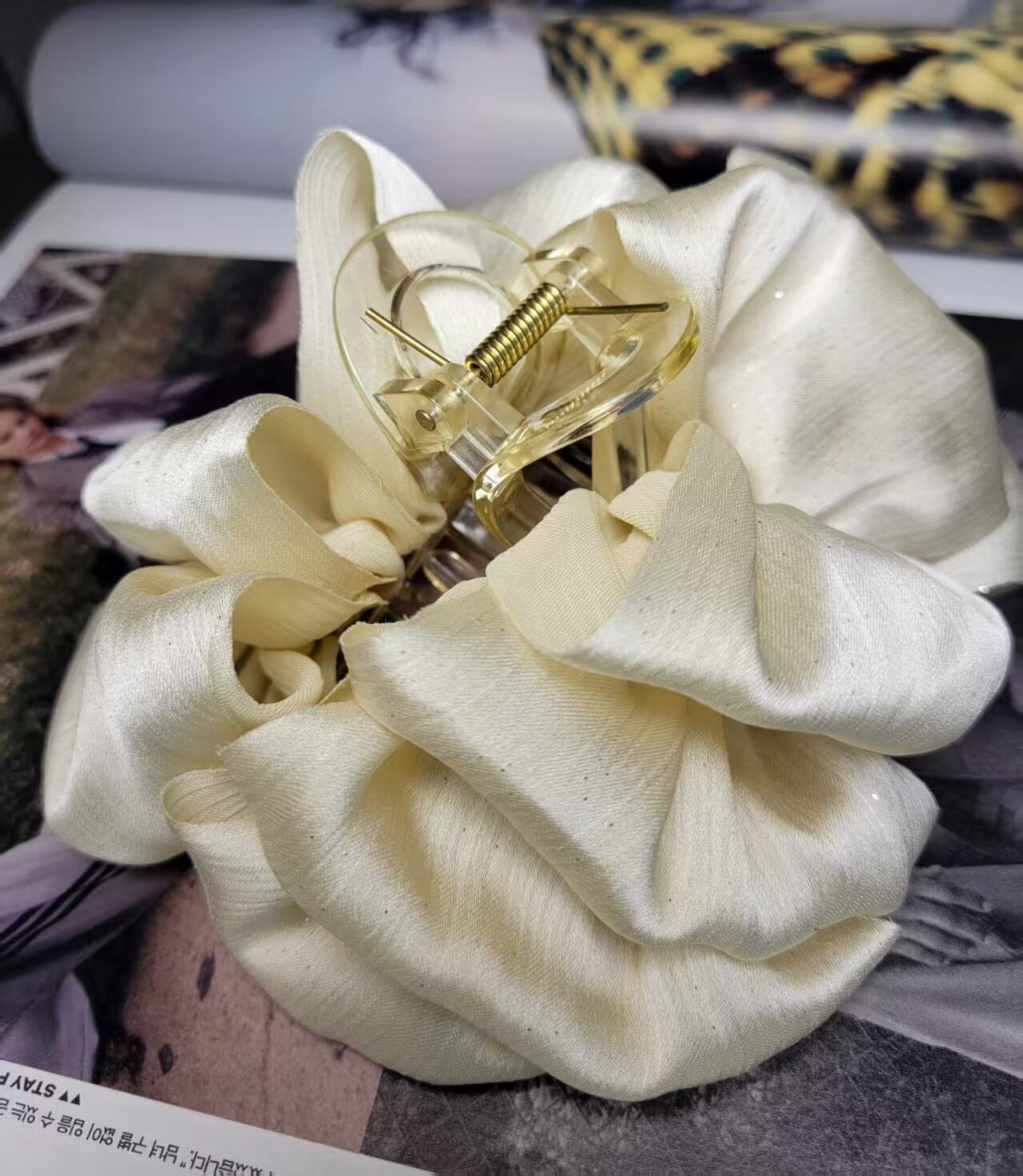 キラキラ上品ベージュシフォンリボンバンスクリップは、優美さと華やかさが融合した特別なヘアアクセサリーです。