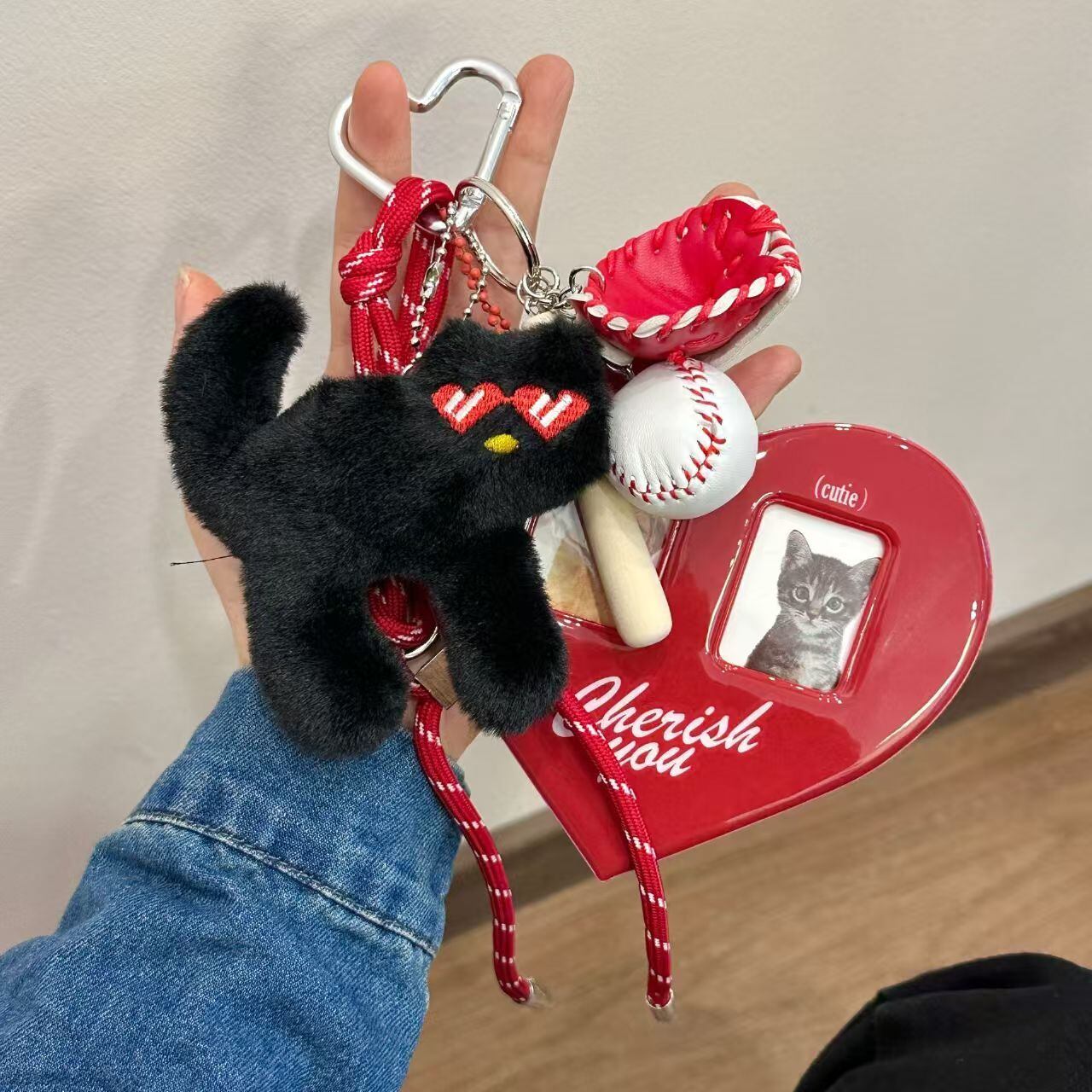 可愛いハート&野球&猫キーホルダー バッグチャーム キーチェーンは、遊び心満載のデザインが魅力の特別なアクセサリーです。