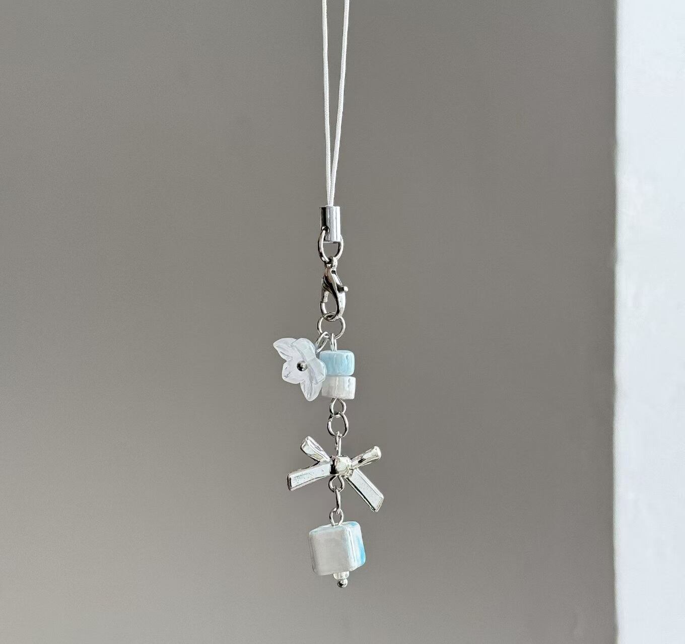 鈴蘭の可憐な花とシャイニーなメタルリボンが絶妙に組み合わさり、バッグやスマホに取り付けることで、日常のコーディネートに華やかさを加えます!一目で周囲の注目を集めること間違いなしのアイテムです。