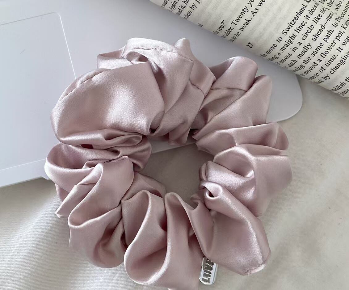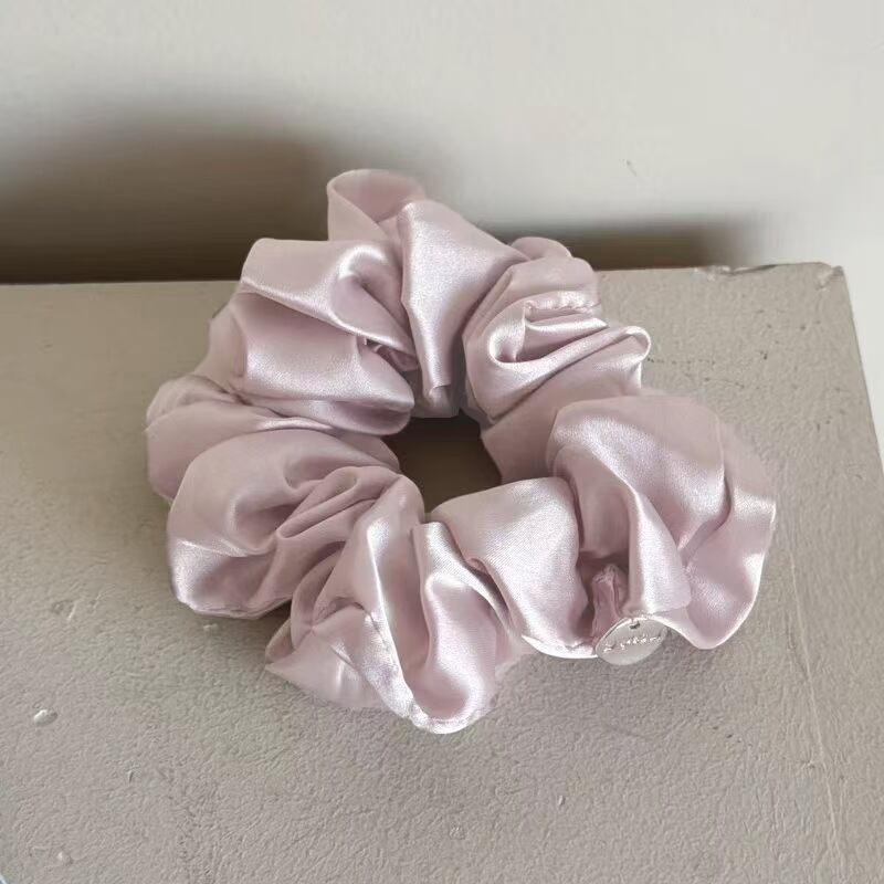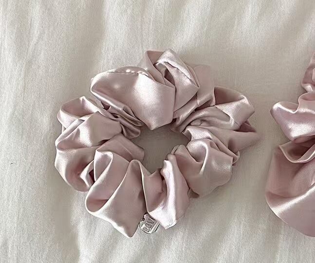LOVEロゴシルバープレート付き♡ピンクサテンシュシュ 大人可愛いヘアアクセ