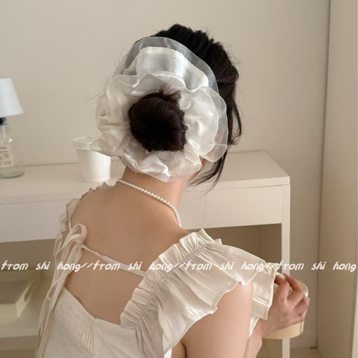 フレンチ風チュールシュシュ 高級感たっぷりヘアアクセ 韓国トレンド