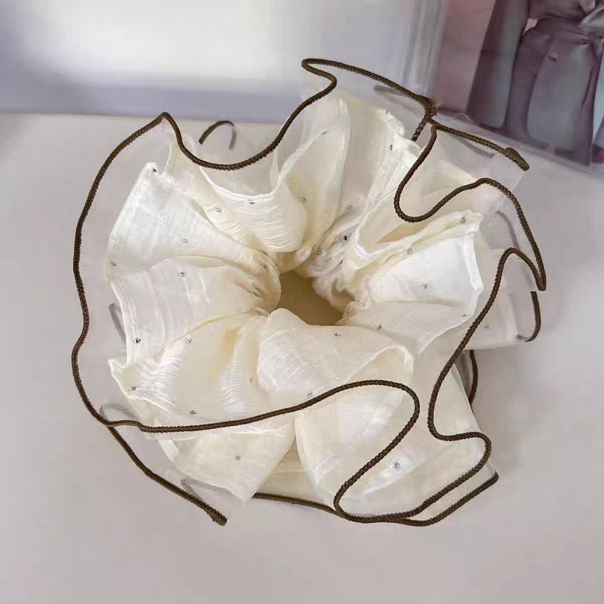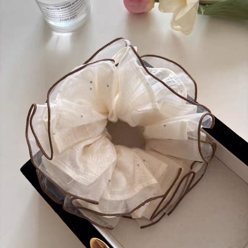 韓国風AB面ラインストーン×チュールシュシュ 高級感ヘアアクセ