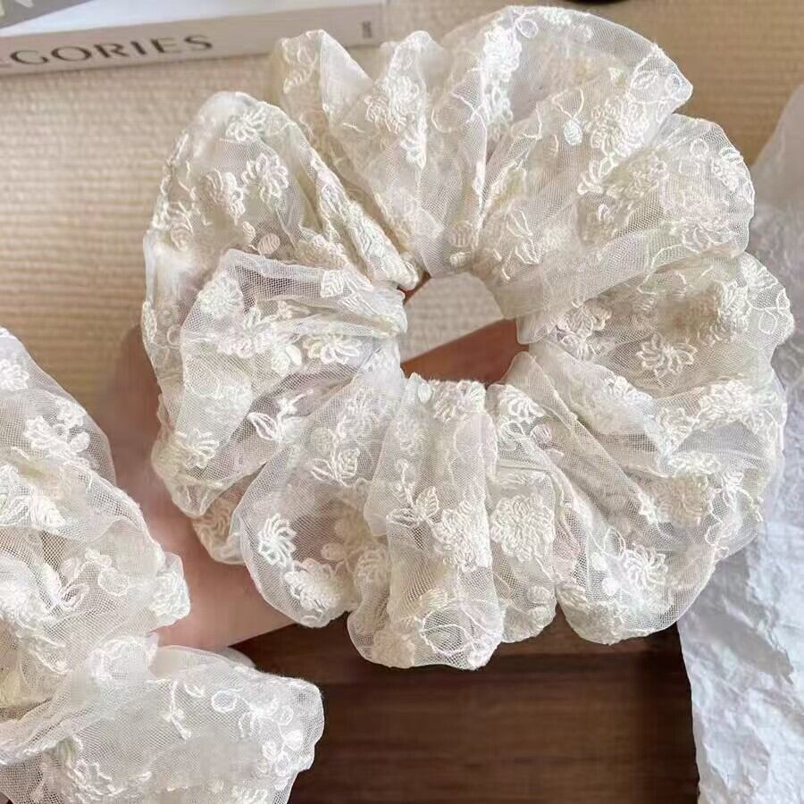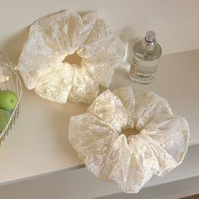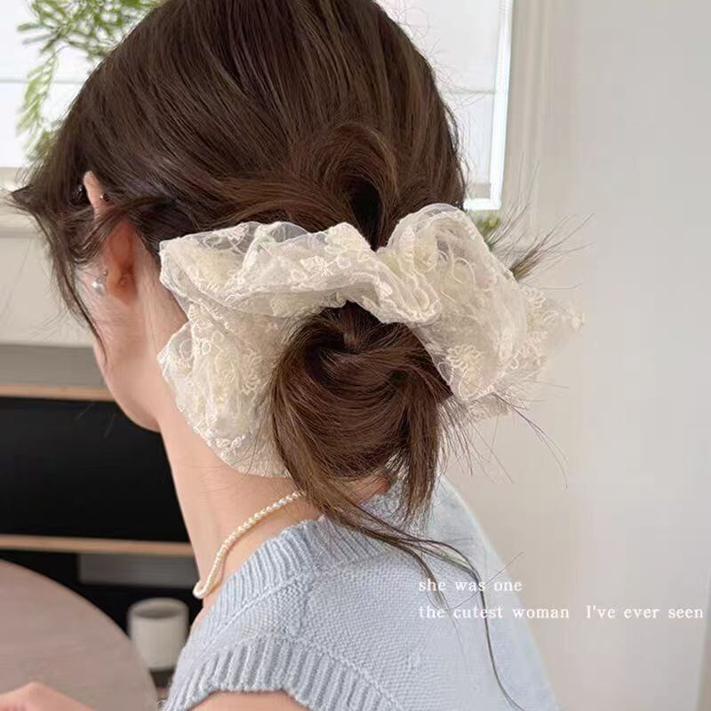 2025新作 韓国風レースシュシュ 大きめサイズ 高級感ヘアアクセ