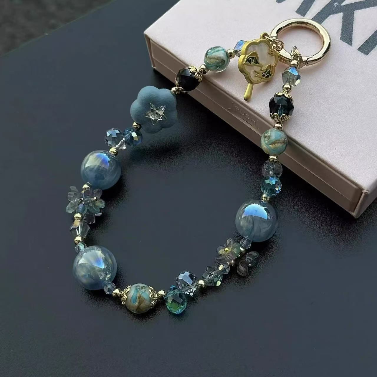 クリスタルは水色から深いブルーへ自然に変わるグラデーションを持ち、光に当たるとまるで海底の光の粒のようにきらめきます。