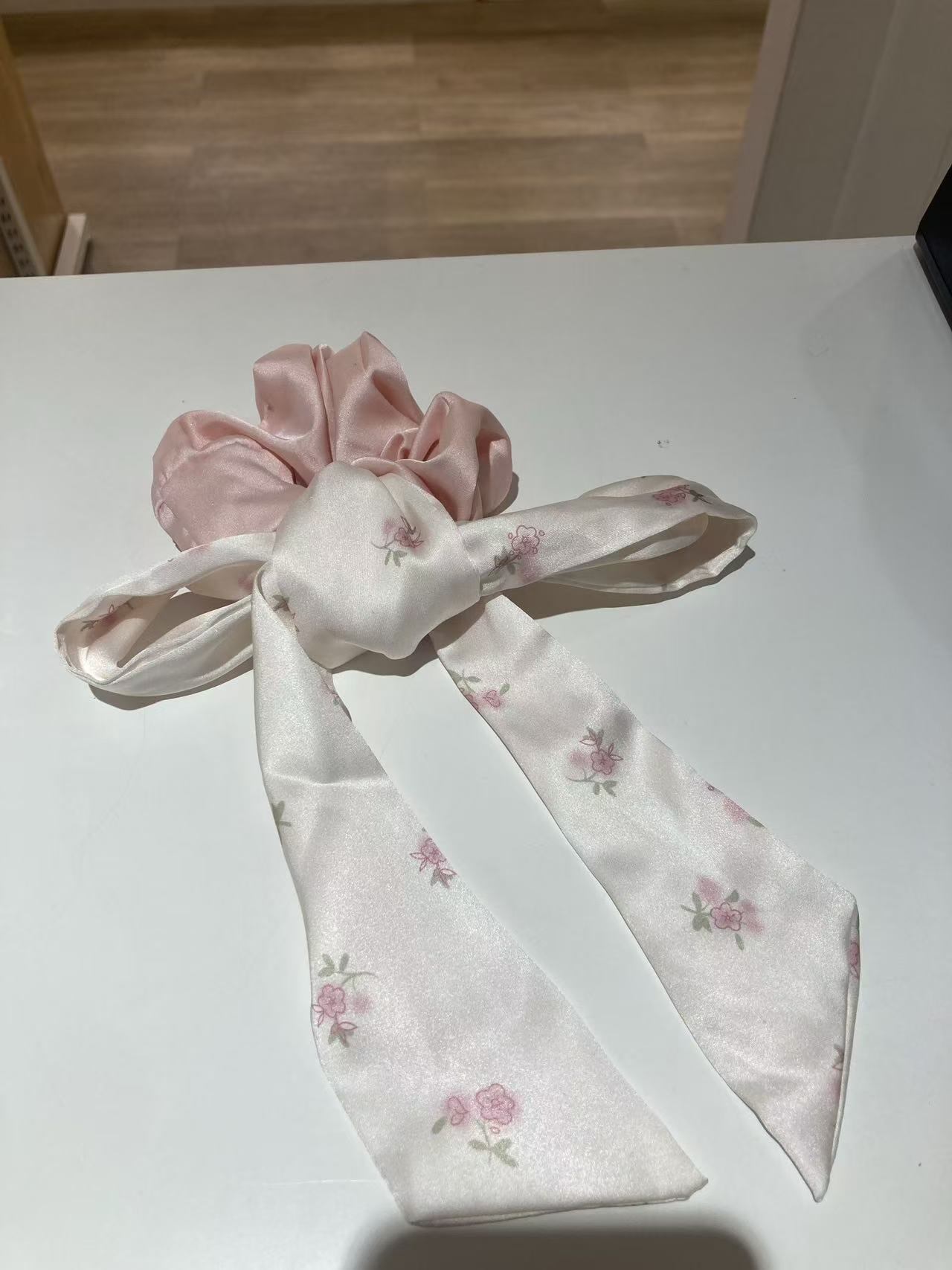 小さなフラワー飾りと、動くたびに優雅に揺れるリボンが特徴で、結んでも垂らしても、シックで可愛い髪型アクセントになります。