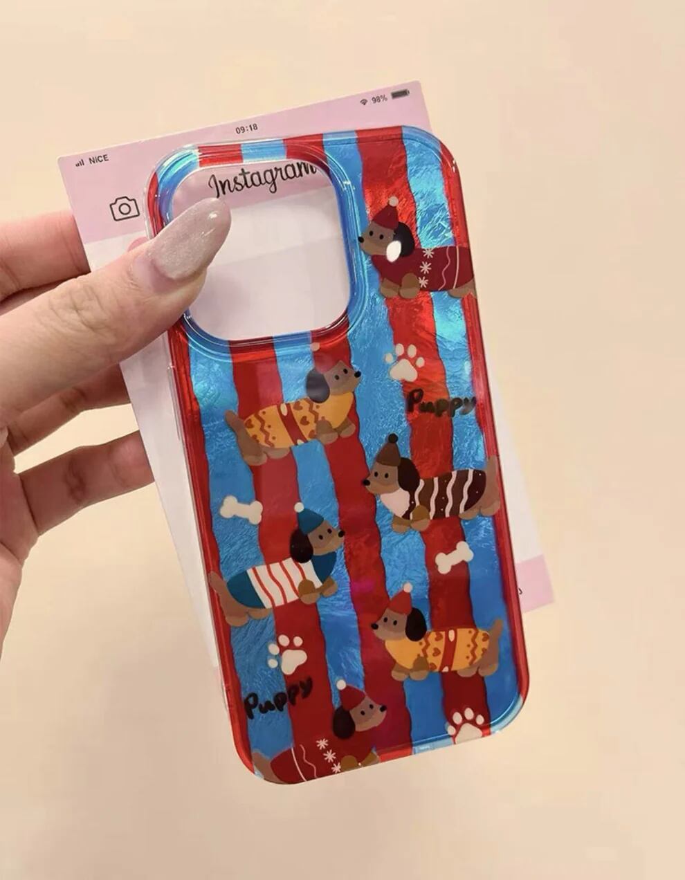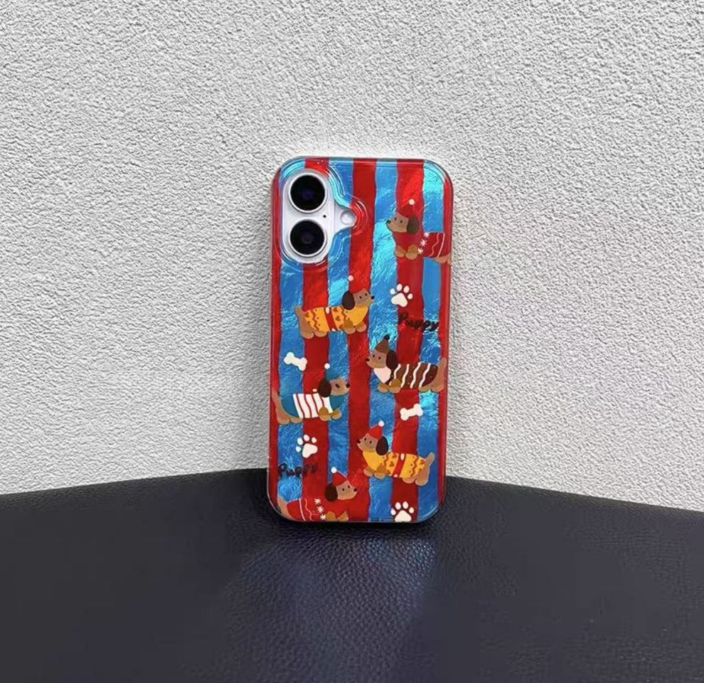 クラシックなレッド&ブルーのストライプ柄を採用した、男女兼用のスマホケースです。