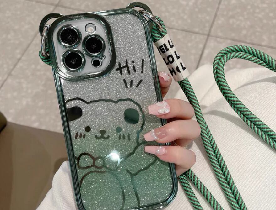 キラキラしたメッキ加工ベアスマホケース