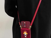 このワインレッドのポップコーンの少女が描かれたスマホケースはとても魅力的です。