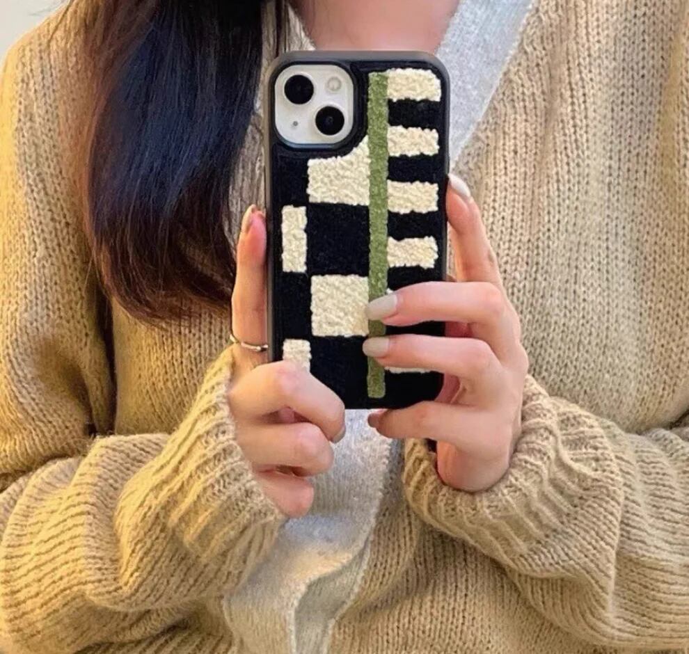 スマホケースの表面はふわふわした素材で覆われており、触り心地が温かくて柔らかいです。