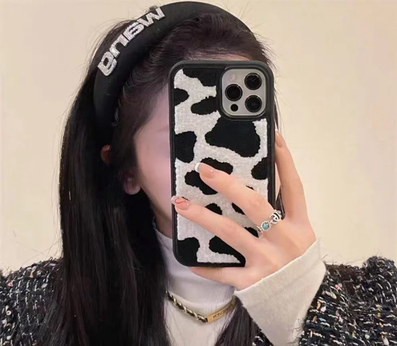 ふわふわのレオパード柄のスマホケース