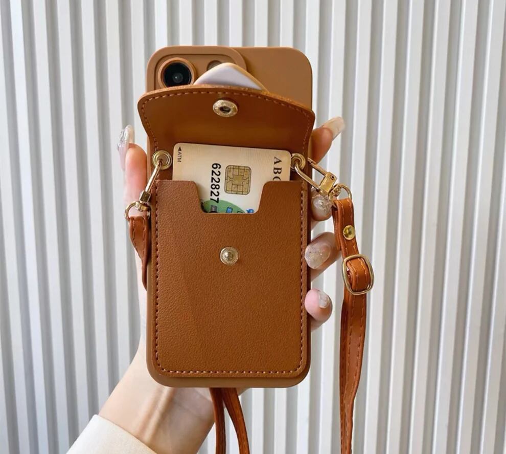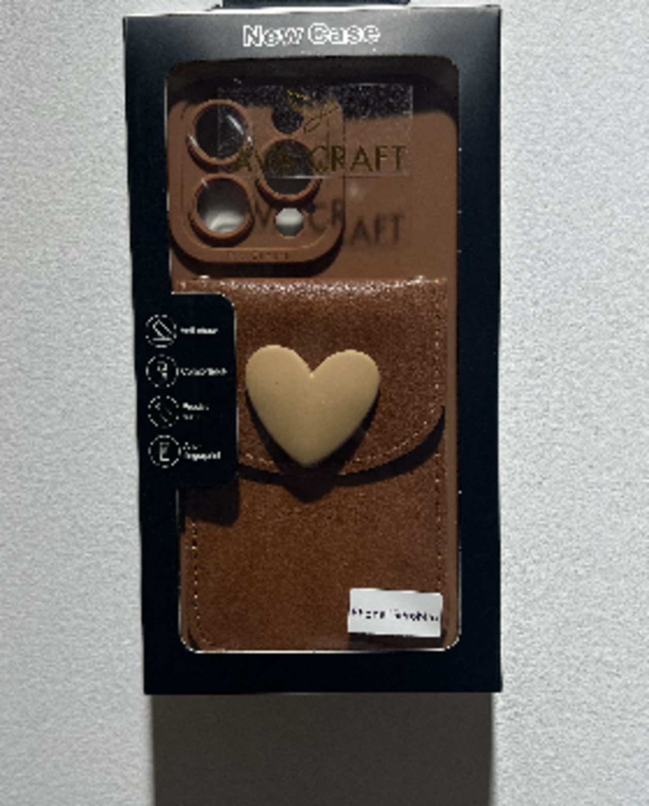 ミルクティー色のカード入れ付き保護カバー付きスマホケース