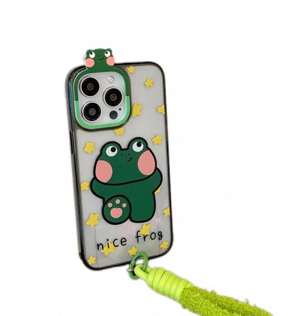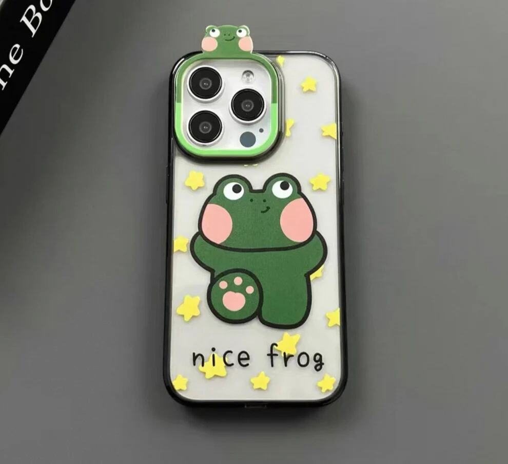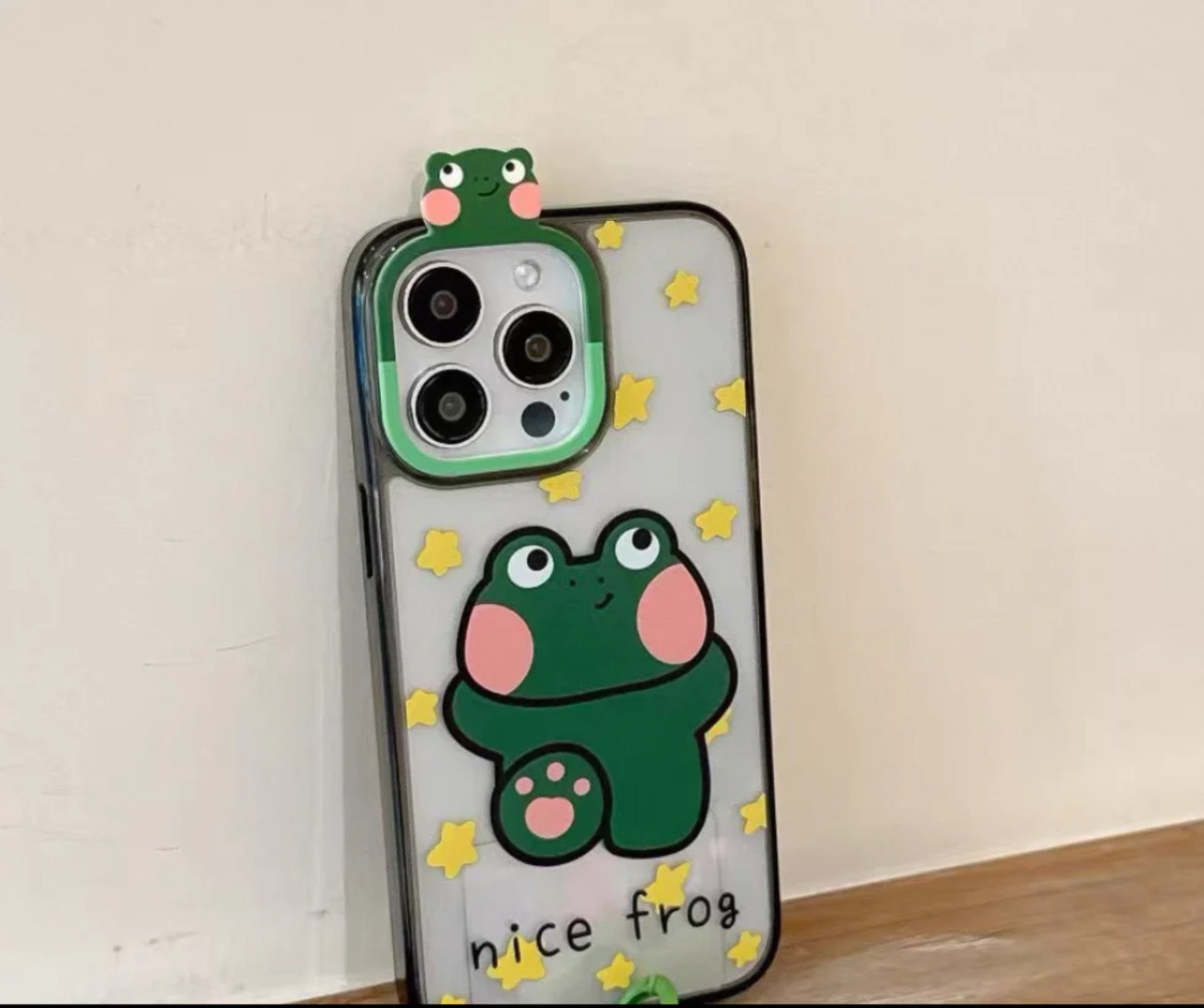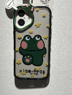 このスマホケースは TPU 素材で作られており、透明な特性を活かしてシンプルなスタイルを表現しています。表面にはカエルと星の図案が印刷されており、面白い雰囲気を演出しています。