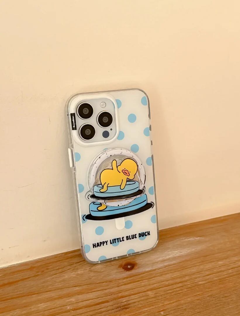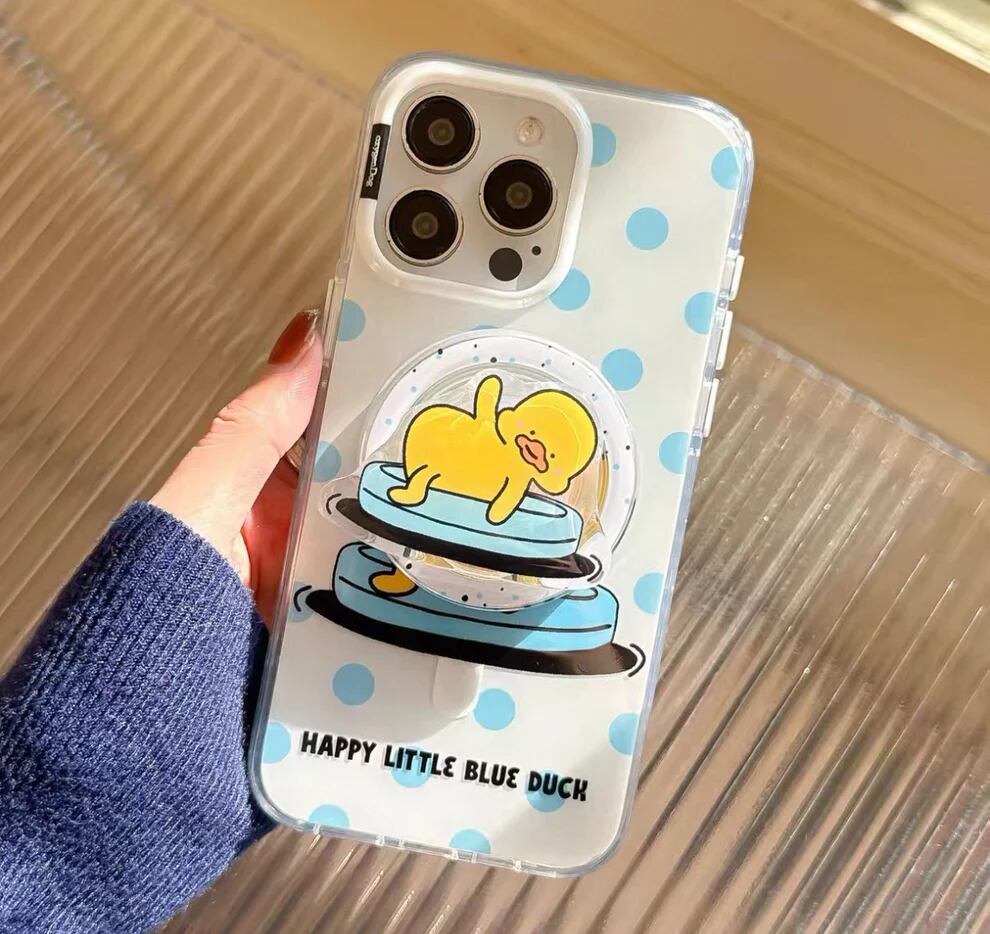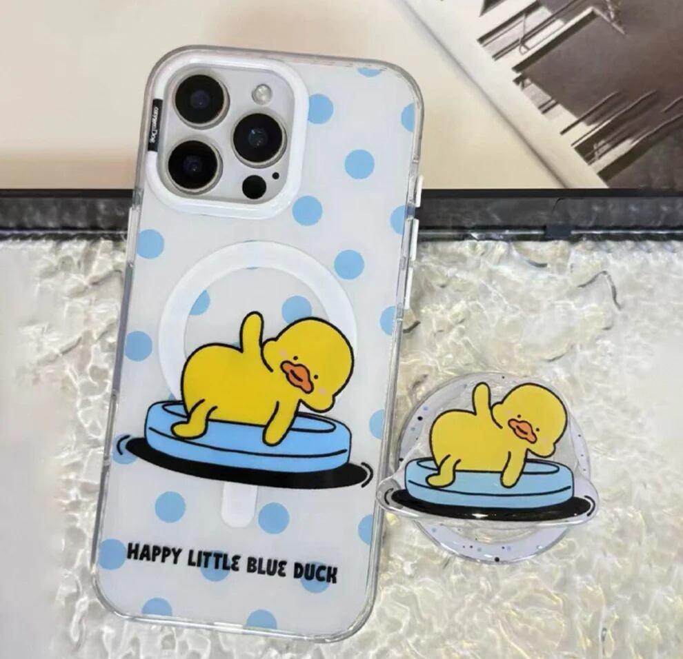 オキシゲン感溢れる黄色いアヒルデザインの 磁石付きスマホケース